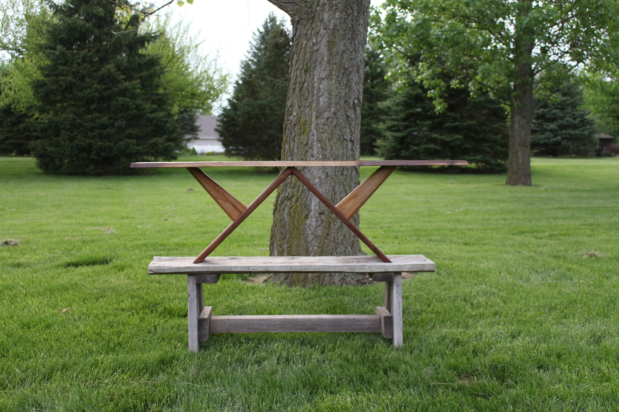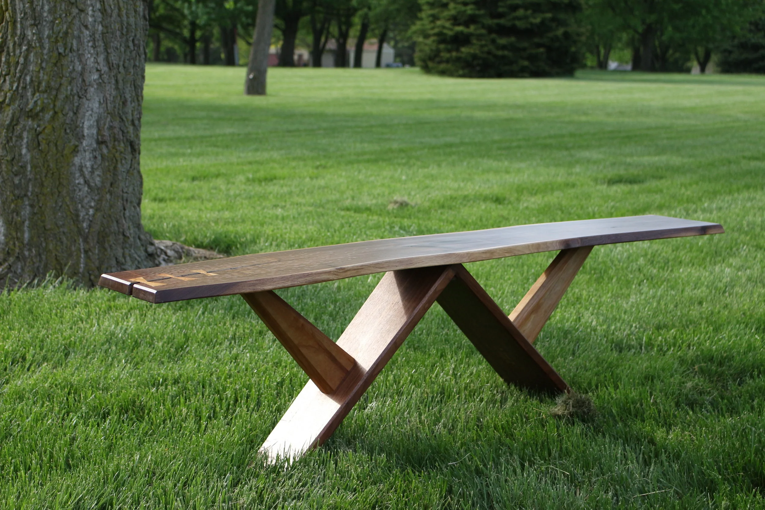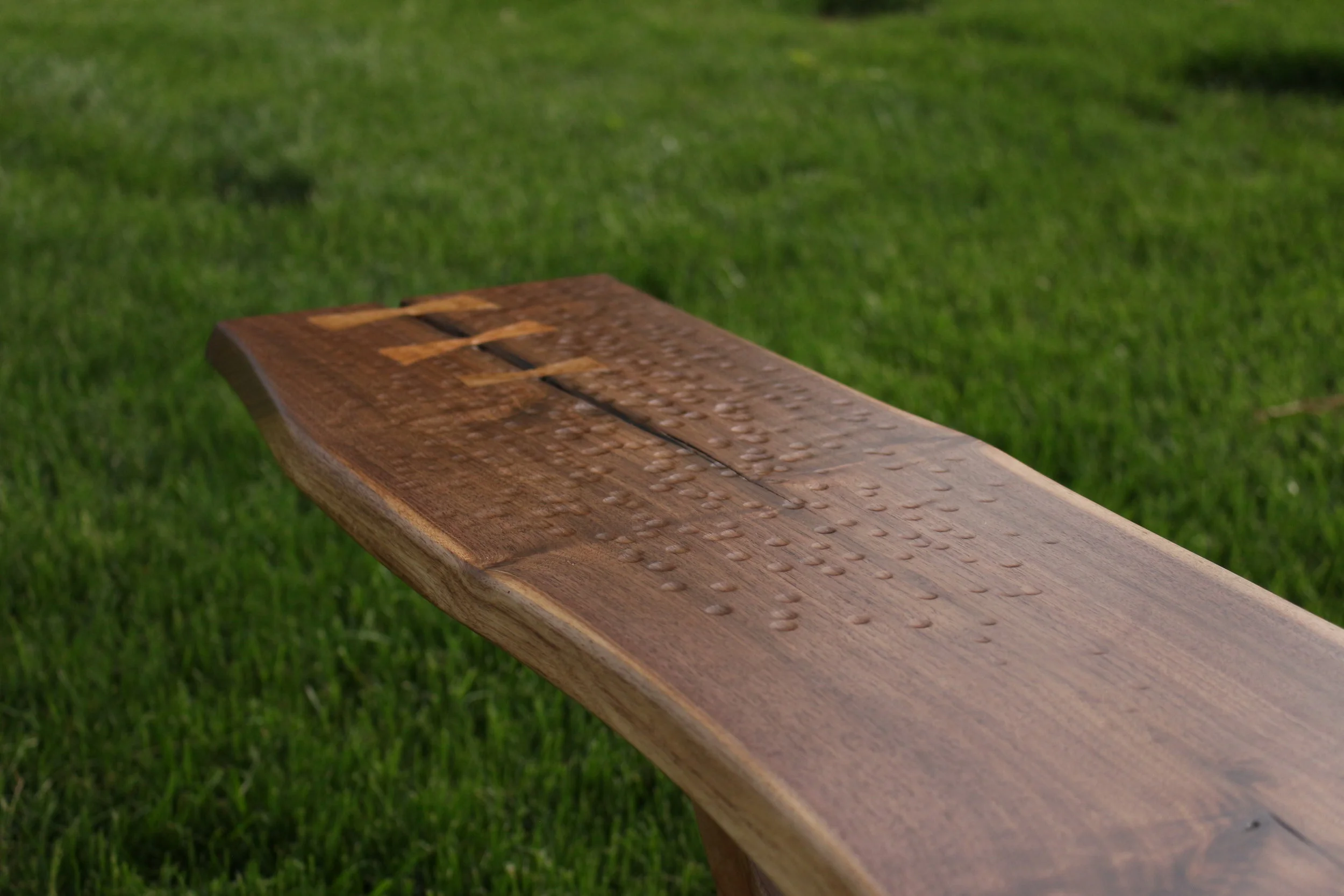The first of several benches made in it’s style, the Original Buckshot Bench makes an effort to display the multi-colored grain of the walnut top and rich cherry details. The top is also detailed with dimples and divots, acting as a texture for the user’s hands to explore while sitting. With dovetail and mortise and tenon joinery, the slim-profile base supports load well and resists tipping.